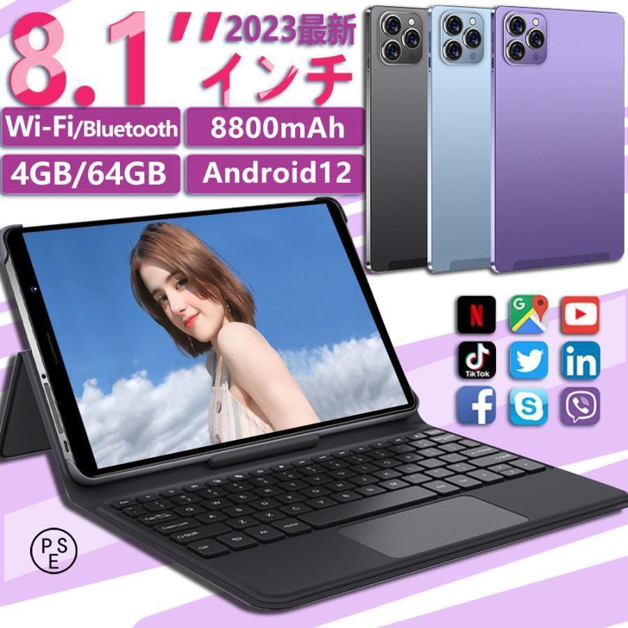 タブレットPC 8インチ android12 4GB+64GB 本体 おすすめ 安い wi-fiタブレット 通話対応 在宅勤務 軽量 ネット授業 子供 Bluetooth GPS 電話 タブレット