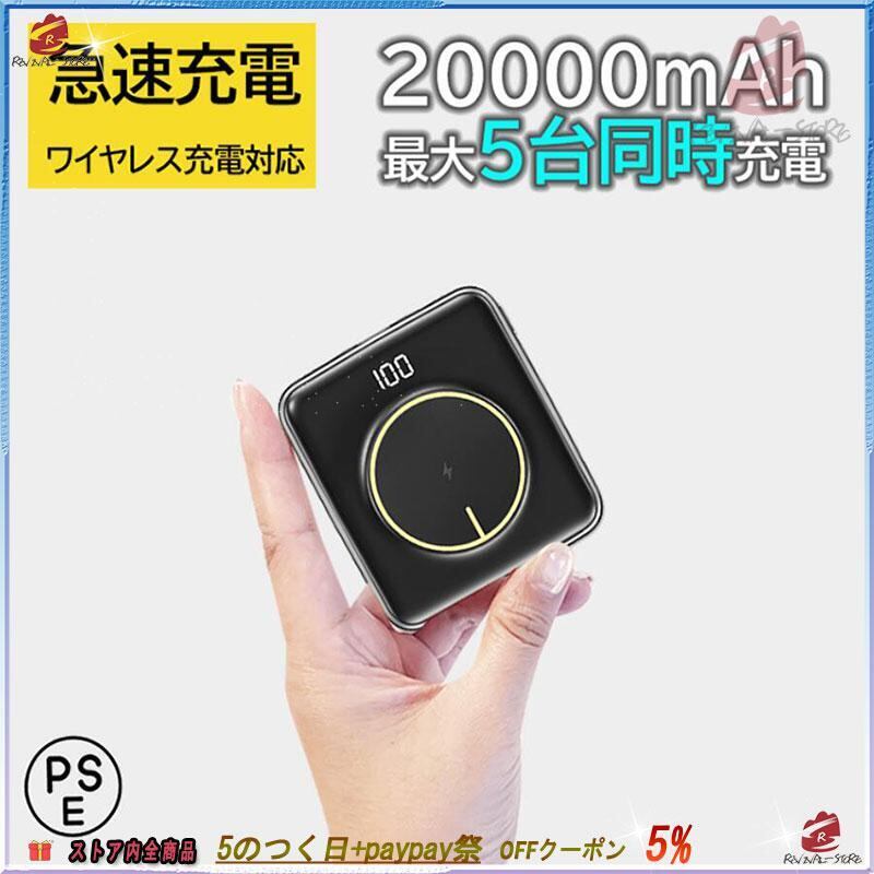 超小型 モバイルバッテリー 超軽量 大容量 20000mah 小型 薄型 軽い ワイヤレス充電器 lightning type-c ケーブル内蔵モバイルバッテリー スマホ 急速 充電器