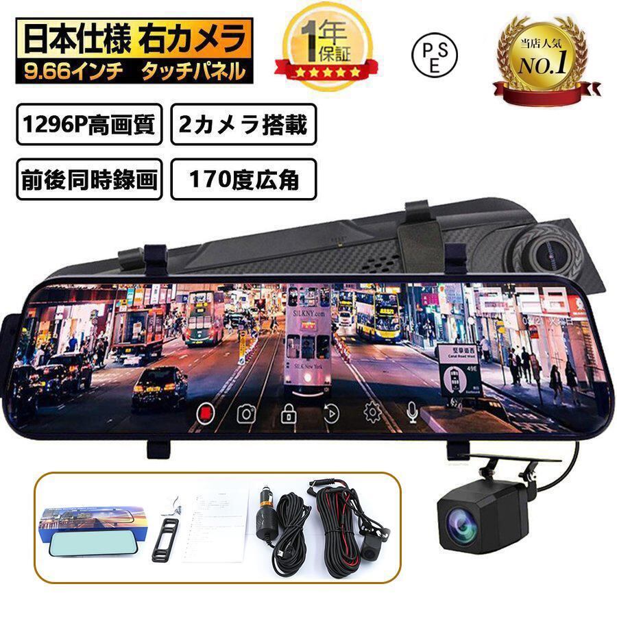 ドライブレコーダー 前後カメラ ミラー型 1296P高画質 1200万画素 10インチ タッチパネル ドラレコ 170度広角視野 ループ録画 動体検知 衝撃録画 Gセンサー