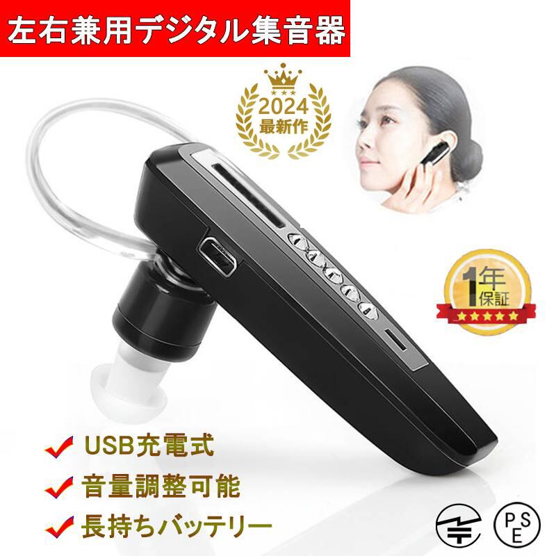 集音器 デジタル 簡単操作 軽量 USB充電式 Bluetooth デザイン 両耳 (左右兼用) デジタル集音器 補聴器 イヤーピース 予備*4個付き 高齢者用 音量調節