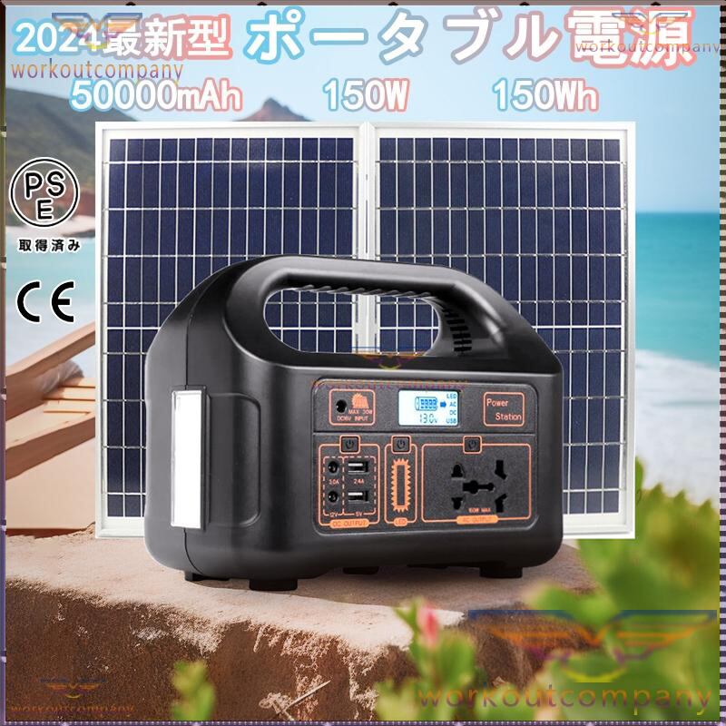 ポータブル電源 大容量 軽量 小型 50000mAh 150W 150Wh 2024最新作 キャンプ AC/DC/USB出力 ソーラー充電 長寿命 災害用電 家庭用蓄電池 車中泊 車載