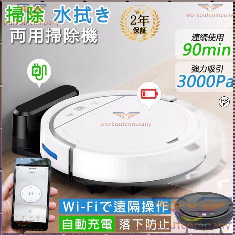 ロボット掃除機 水拭き両用 超薄型 省エネ 3000Pa強力吸引力 静音 多様なアプリ機能 落下防止 衝突防止 Wi-fi 遠隔操作 自動充電 お掃除ロボット シンプル操作