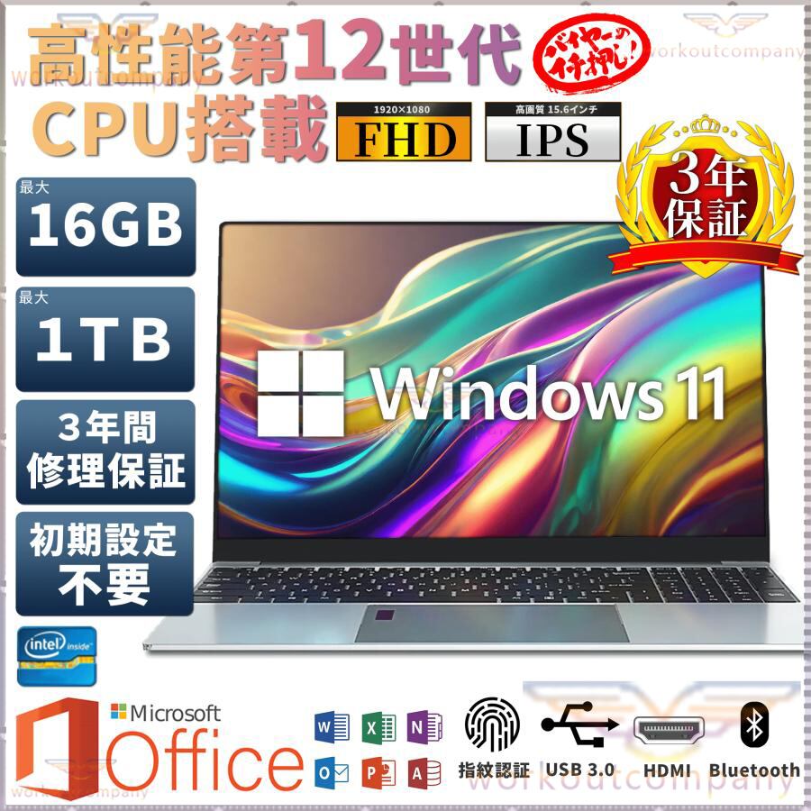 ノートパソコン 新品 windows11 office搭載 第12世代 CPU メモリ16GB SSD1TB 安い 新品パソコン パソコン pc ノートPC テンキー カメラ