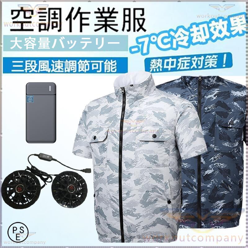 空調作業服 空調ウェア 半袖 10000mAh 20000mAh 大容量バッテリー追加 ファン セット 着る扇風機 エアコン服 空調作業着 冷却服 大風量 熱中症対策 夏用