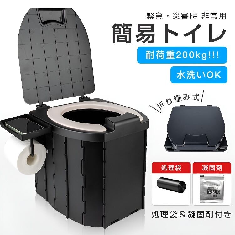 簡易トイレ 折りたたみ式 災害用 凝固剤付き 軽量 車中泊グッズ 車載用 防災 非常用 携帯トイレ 掃除簡単 車 介護 ポータブル 簡単収納 キャンプ アウトドア