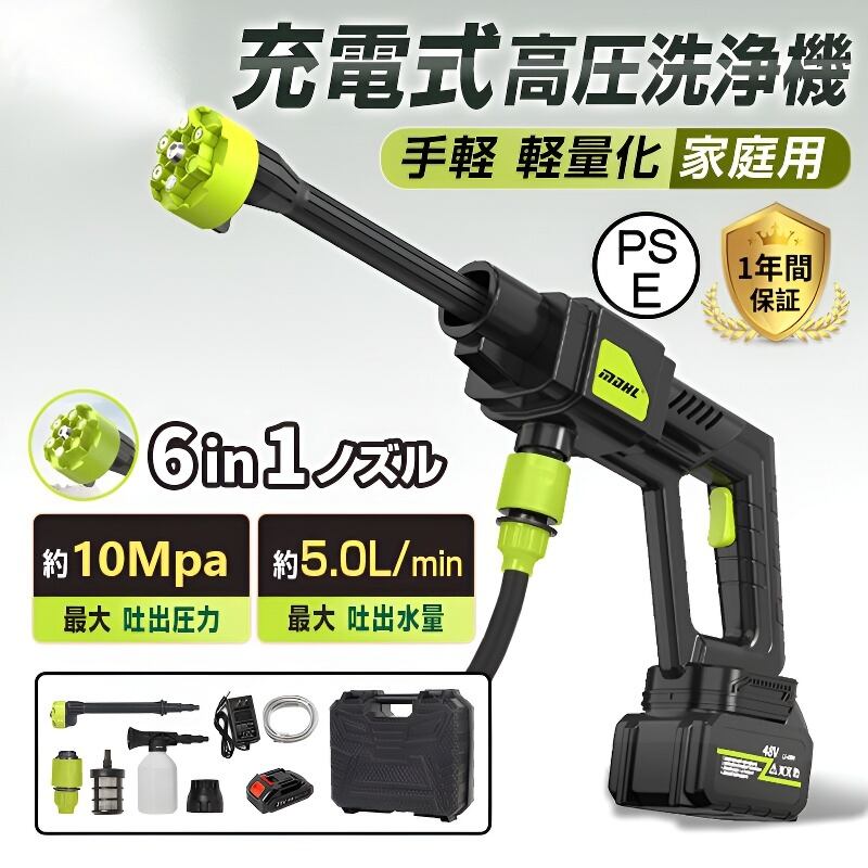 高圧洗浄機 コードレス 充電式 大容量バッテリー マキタバッテリー対応 6in1 収納ケース付き 10.0MPa 自吸式 強力 家庭用 洗車タオル 小型 電動工具 洗車 2024