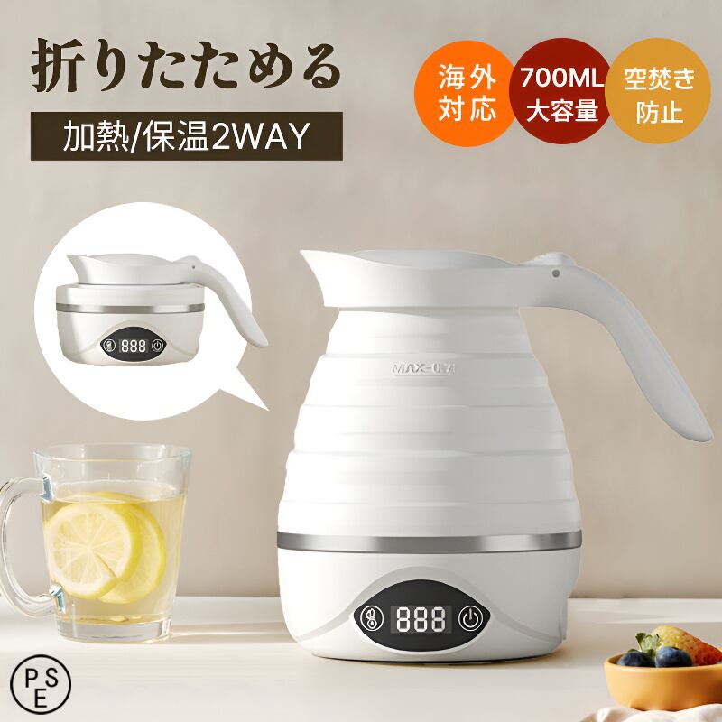 電気ケトル トラベルケトル 折りたたみ式 700ml 6段階温度調節 湯沸かし器 空焚き防止 アウトドア 携帯 便利 旅行 出張 海外対応 自宅 防災 キャンプ 国内
