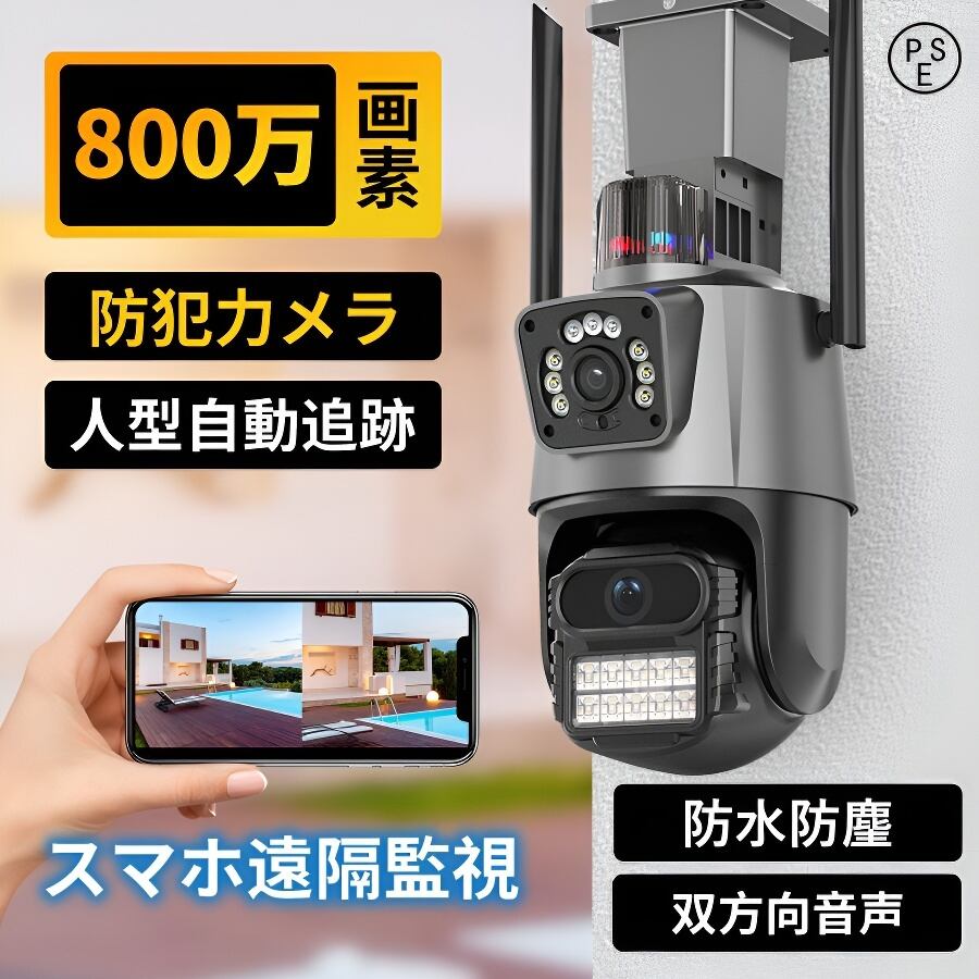 防犯カメラ 屋外 家庭用 wifi 800万画素 屋外カメラ パンチルト モーショントラッキング IP66 電源不要 工事不要 防水防塵 音声通話 監視カメラ 人感録画