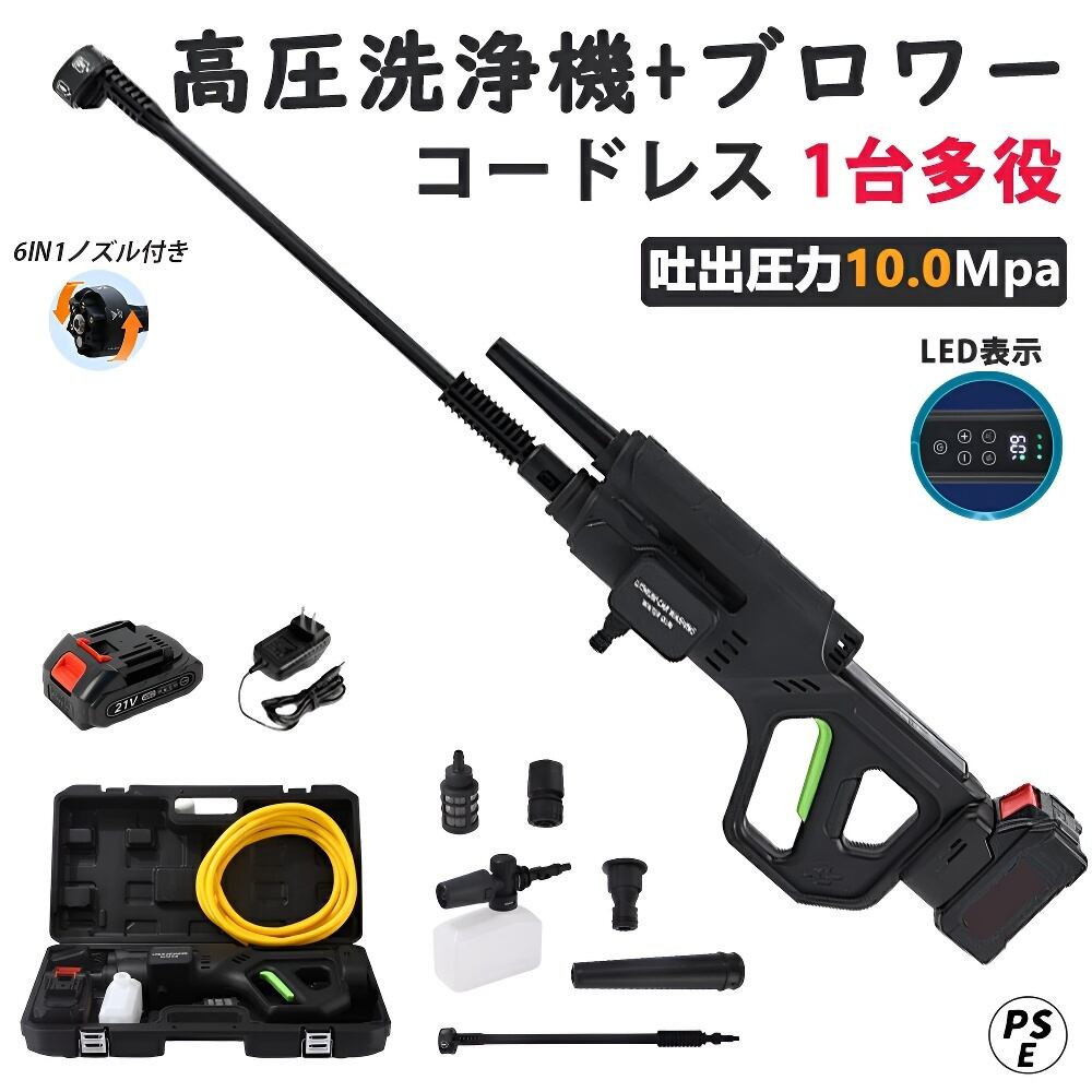 高圧洗浄機 コードレス 充電式 ブロワー ブラシレスモー ペットボトル 2in1 6段階マルチスプレー 10MPa 強力噴射 自吸式 ベランダ 電動工具 家庭用 洗車 車掃除