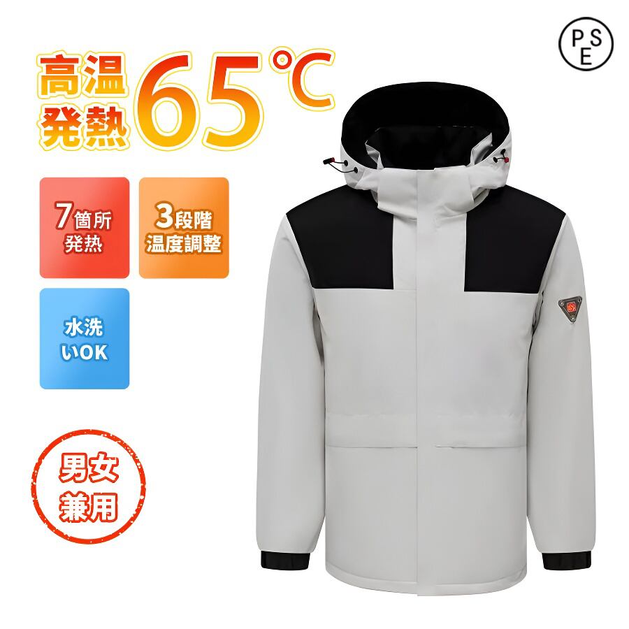 電気ジャケット 電熱ウェア アウター 長袖 USB加熱 最大65℃ 速暖 前後3段温度調整 電熱服 発熱ジャケット 電熱アウター 水洗い 速暖 極暖 超軽量 釣り スキー