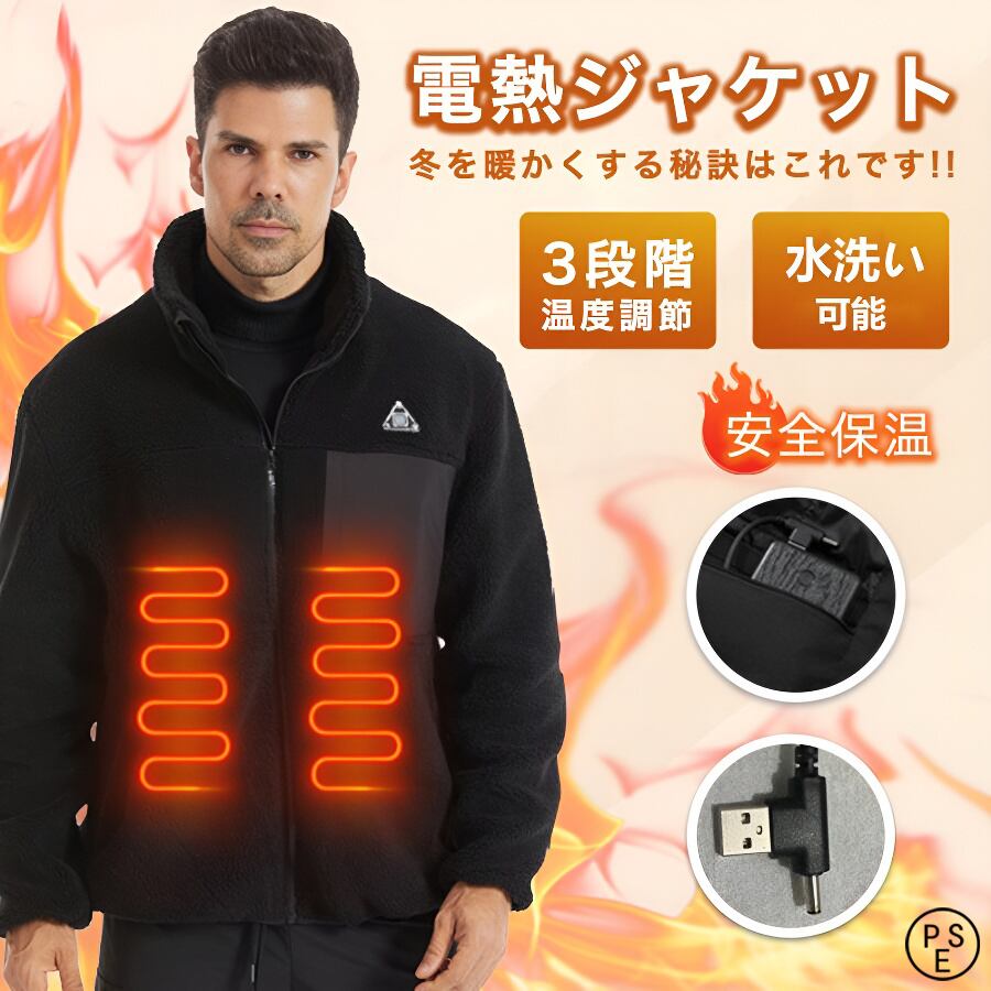 電熱ジャケット ボアフリース 長袖 電熱ベスト バッテリー付き 4箇所発熱 暖房服 防寒 ヒーター付き防寒着 ブルゾン USB充電式 水洗い可能 ふわふわ 屋外作業