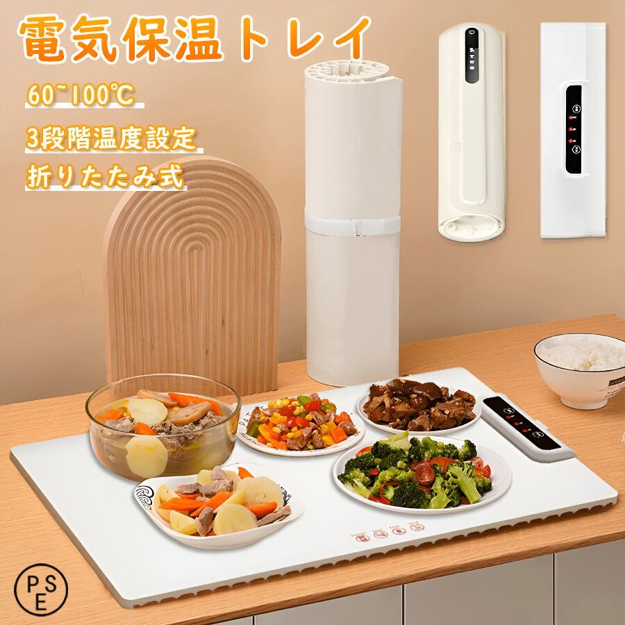 ホットプレート 電気保温トレイ 食品保温プレート 折りたたみ式 多機能食品断熱ボード 3段階の温度設定 フードウォーマー フルプレート加熱 お手入れも簡単 2024